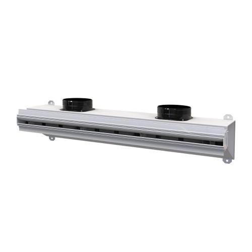 Diffusore lineare a scomparsa in PVC anticondensa con serranda, plenum coibentato e deflettore centrale.