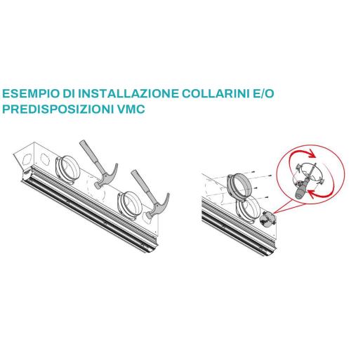 Il plenum è dotato di ulteriori predisposizioni sia per canalizzazioni supplementari che condotti VMC, da sfondare al bisogno.