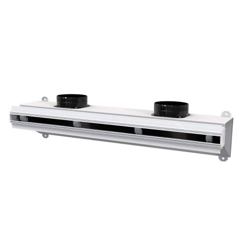 Diffusore lineare a scomparsa in PVC anticondensa di ripresa e plenum coibentato. Disponibile con feritoia da 20 o 30 mm di colore bianco o nero.