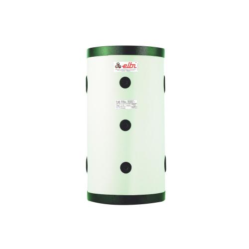 Accumulatore di acqua calda per il riscaldamento di forma cilindrica ad asse verticale in acciaio con connessioni supplementari.