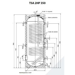 TSA 2HP 350 - bollitore da 350 Lt. a doppio serpentino per la produzione di ACS con pompa di calore e sistema solare